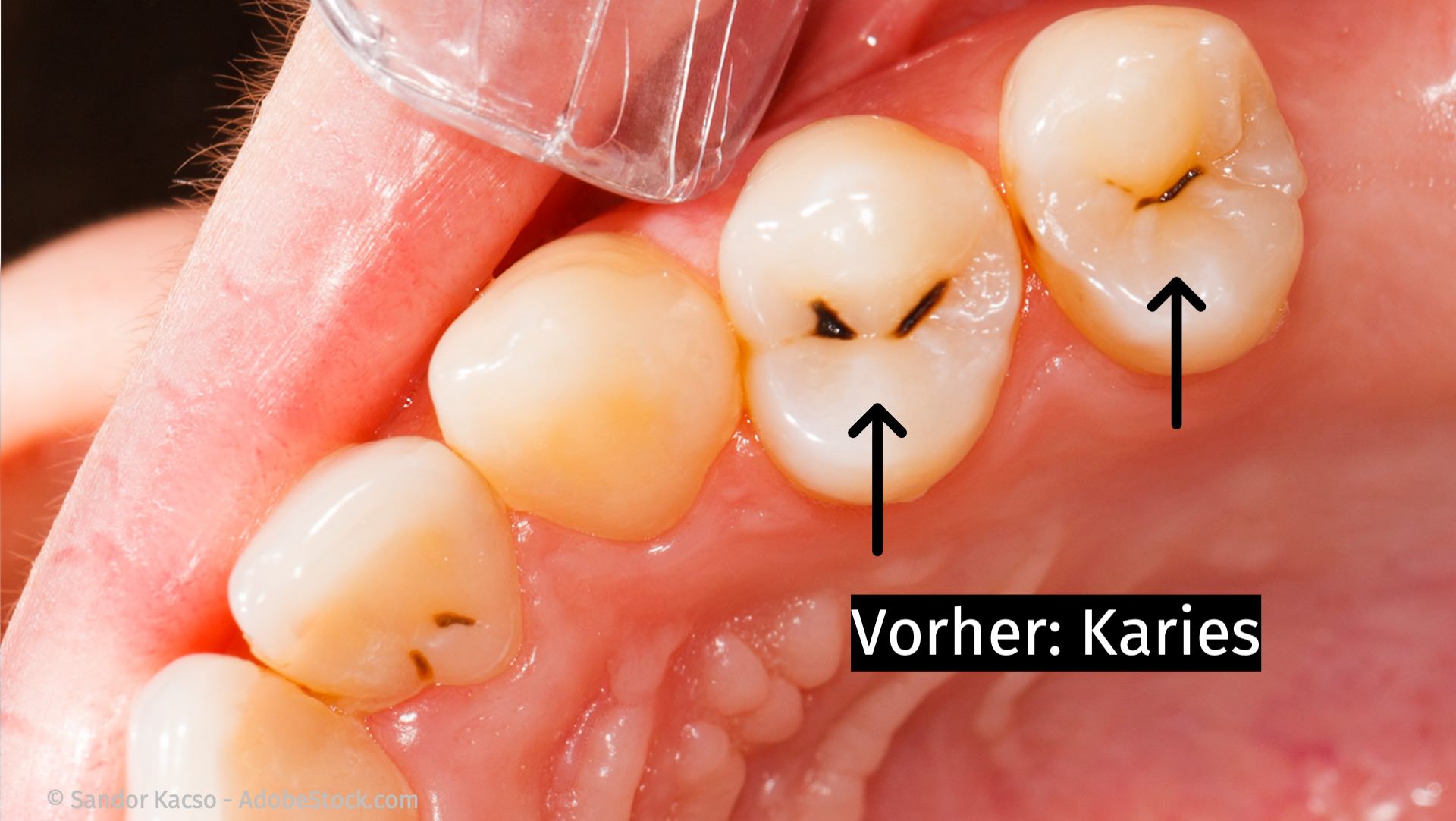 Um Zähne vor Karies zu schützen, überziehen wir sie bei der Prophylaxe mit einem Fluorid-Lack. Außerdem versiegeln wir bei Bedarf die sog. Fissuren mit einem Kunststoff (Foto). Fissuren sind feine Grübchen auf den Zähnen, in denen sich Zahnbelag und Bakterien festsetzen, die von der Zahnbürste nicht erreicht werden.